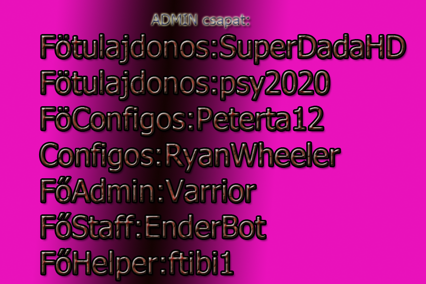 Ez a TampaCraft admincsapata ha bárkivel bajod van akkor jelents a fötulajoknak köszönjük!!